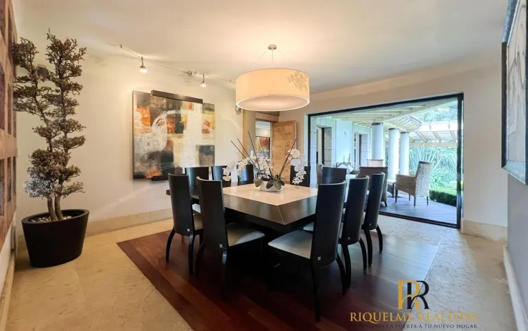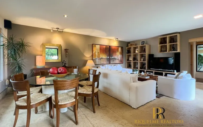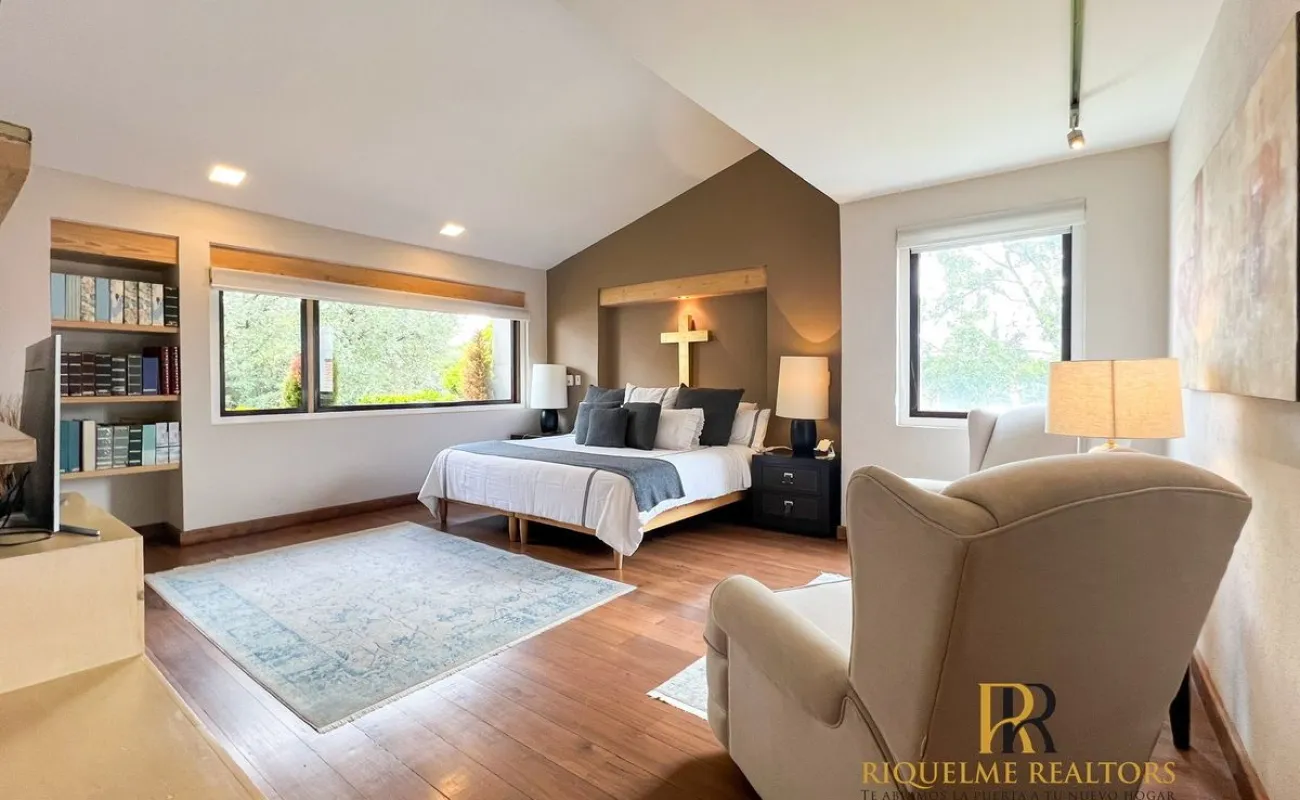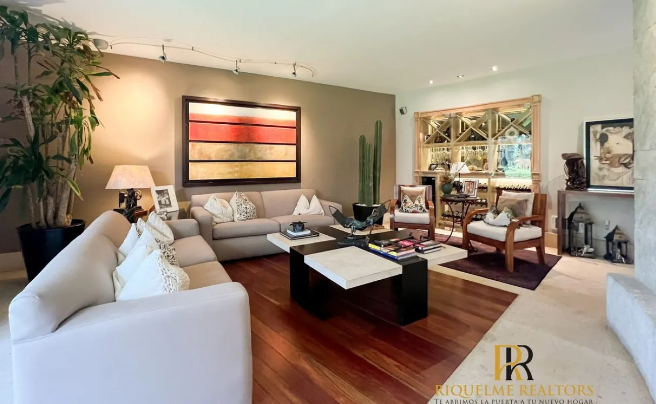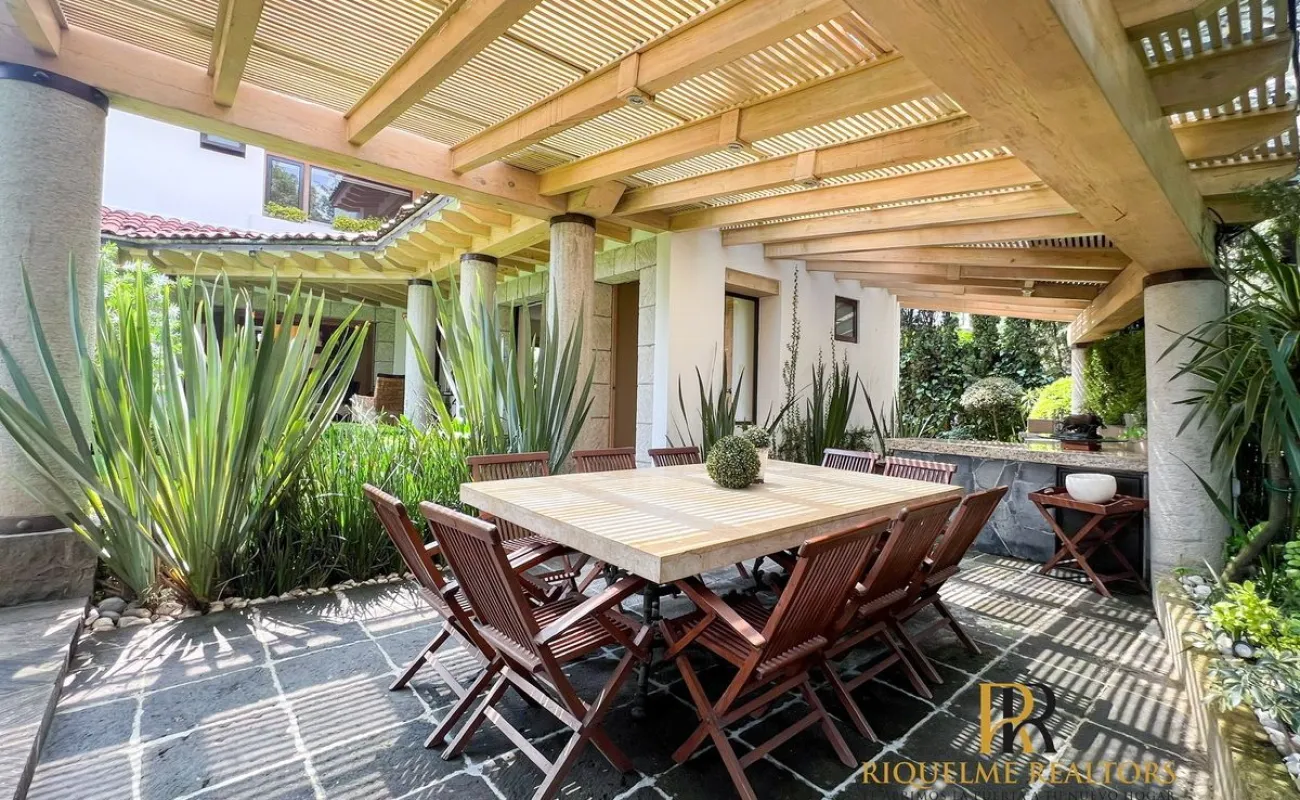 Bienvenido a una propiedad que redefine el concepto de elegancia y confort, ubicada en el prestigioso condominio "La Cima". Con una arquitectura excepcional, mucha luz, materiales de la más alta calidad, privacidad, terrazas y un hermoso jardín, esta residencia ofrece todo lo que una familia moderna puede desear. Principales Características: • Terreno: 605 m² • Construcción: 650 m² • Recámaras: 3 recámaras con vestidor y baño • Baños: 3 baños completos y 2 medios baños Distribución Interior: • Sala con Chimenea: Perfecta para reuniones familiares, con acceso directo a precioso jardín • Comedor Amplio: Ideal para cenas formales, con salida a terraza y jardín, • Cocina Integral: Equipada con isla central, electrodomésticos de alta gama y gran funcionalidad. • Family Room Doble: Un área social adicional con puertas de acceso al jardín, ideal para compartir momentos en familia. • Estudio: Perfecto para quienes trabajan desde casa o necesitan un espacio de concentración, además tiene salida a terraza delantera. • Hall Recibidor de Doble Altura: Un recibimiento impresionante con diseño arquitectónico que maximiza la luz natural. • Terrazas: Terraza de jardín perfectamente integradada a la casa mediante grandes ventanales corredizos: ademas, cuenta con amplia terraza techada con tarja y asador, proporcionando espacios acogedores al aire libre. Características Adicionales: • Materiales de Primera: Cantera, concreto martelinado, pisos de mármol, carpintería en madera natural y vigas de oyamel calado. • Cancelería de Aluminio Línea Europea para mayor durabilidad y estilo. • Tejas Tipo Mayorquino que destacan por su diseño clásico. • Terraza Exterior con Asador Empotrado: Disfruta de una terraza amplia con pérgola de madera de pino y vidrio templado, perfecta para comidas al aire libre. • Cuarto de Planchado y Lavado: Con amplios espacios y excelente distribución. • Cuarto de Servicio y Cuarto de Choferes: Espacios adicionales que agregan funcionalidad a la casa. • Cuarto de Máquinas, Doble Bodega y 4 Estacionamientos: Espacio de sobra para almacenamiento y vehículos. Amenidades y Tecnología: • Hidroneumático, Calefacción Hidrónica y Paneles Solares: Para garantizar confort en todo momento. • Riego por Aspersión y Muros de Contención: Maximización del mantenimiento del jardín y estabilidad estructural. • Fuente Frontal: Detalle arquitectónico que aporta elegancia al exterior. Amenidades del Condominio: • Seguridad y Vigilancia 24/7: Acceso controlado y sistema de seguridad de alto nivel. • Deportivas y Sociales: 2 canchas de pádel, cancha de fútbol, pista de jogging e invernadero. • Áreas Verdes: Amplios jardines con juegos infantiles, salón de fiestas para 300 personas. Mantenimiento de $9,400 que incluye: seguridad, videocámaras y jardinería del desarrollo y del interior de la casa Esta es tu oportunidad de vivir en una casa diseñada para quienes buscan lujo, comodidad y exclusividad. Agenda tu visita hoy y comienza a disfrutar del estilo de vida que siempre soñaste en Condominio "La Cima". PRECIO $27,850,000