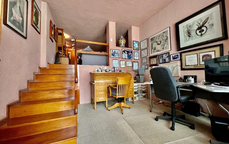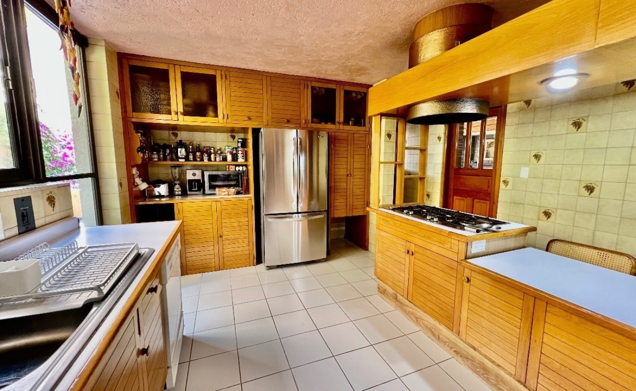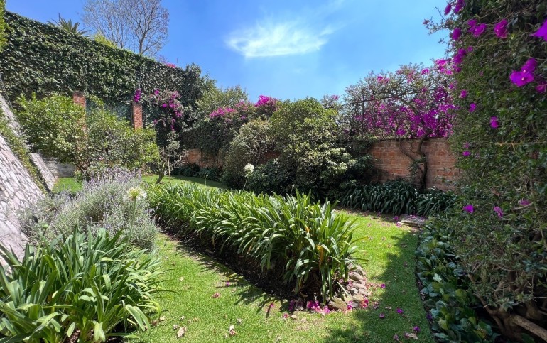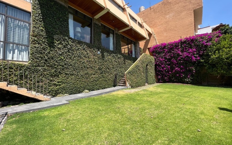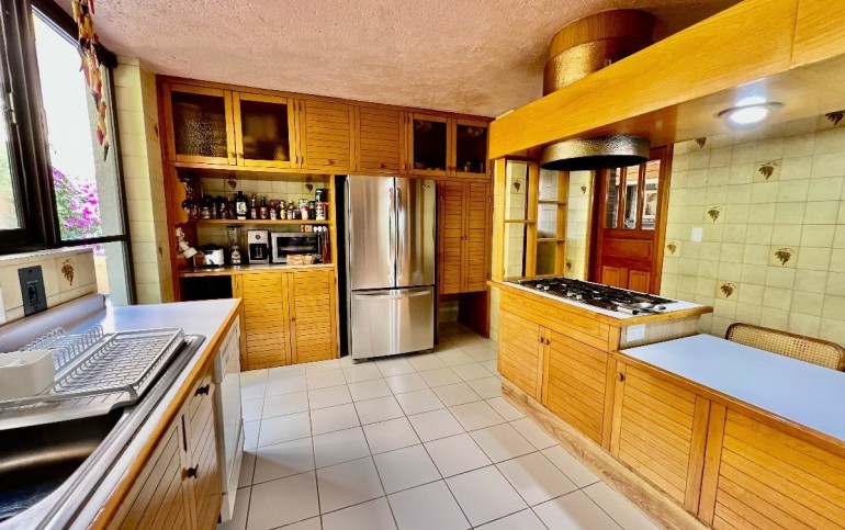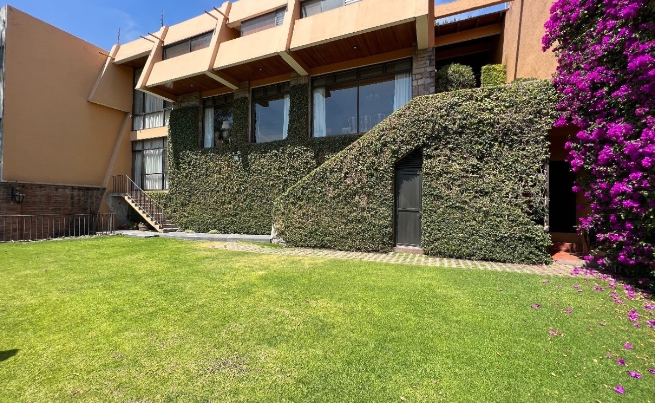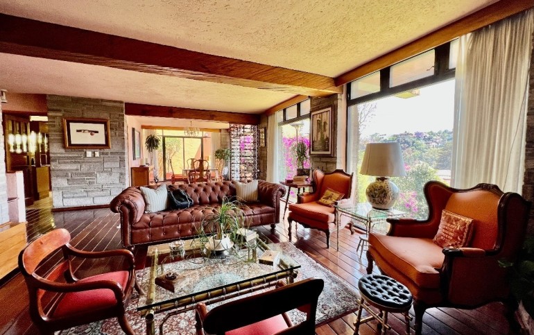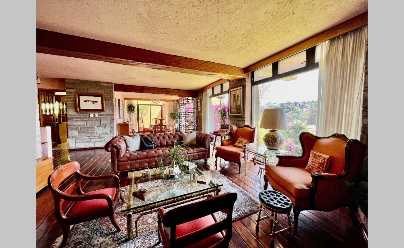 Preciosa casa en la Herradura muy iluminada con ventana que dan a una vista increíble al bosque. Cuenta con sala con chimenea muy acogedora, ,comedor y una sala secundaria con vistas espectaculares al jardín. Dos preciosos jardines de 100m2 aproximadamente con riego de aspersión y un medio baño en el jardín. Cuenta con un agradable family y oficina Cocina, cuarto de servicio y cuarto de lavado amplios. Consta de 4 recámaras, la principal con vista al jardín con techos altos, increíbles vigas de madera, baño completo y walking closet. Las demás recámaras tienen baño completo y closet. Garage techado, dos bodegas, paneles solares, sistema de alarma, bomba hidroneumática. La casa está súper bien conservada, con excelentes acabados, pisos de duela de madera.