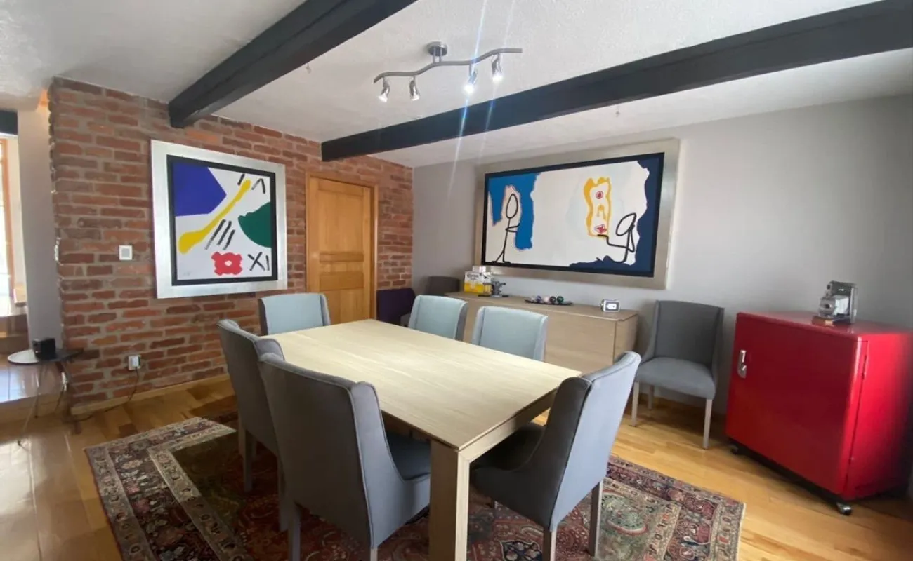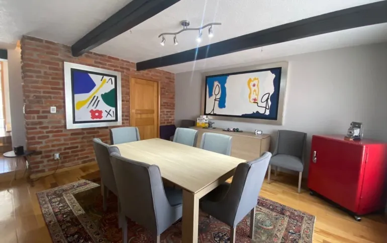 VESTÍBULO, SALA, COMEDOR CON PISOS DE MADERA , MEDIO BAÑO, DESAYUNADOR, ALACENAS Y COCINA INTEGRAL.