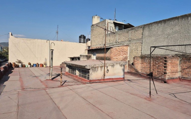 Está construida en un nivel más la azotea. Tiene cuatro recámaras, un estudio y 3.5 baños. Hay más habitaciones.