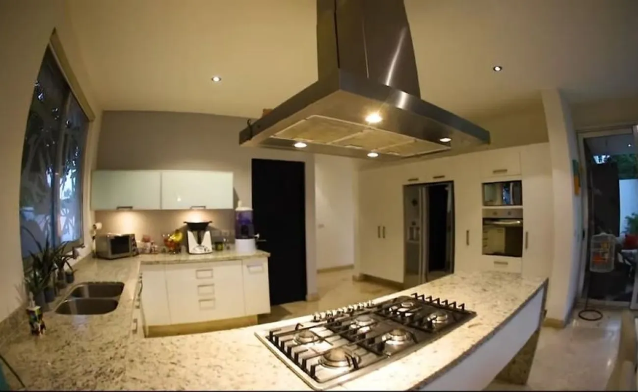 Cocina integral con cubierta de granito. Alacena y antecomedor. Cuarto de lavado, bodega interior y dos bodegas exteriores.