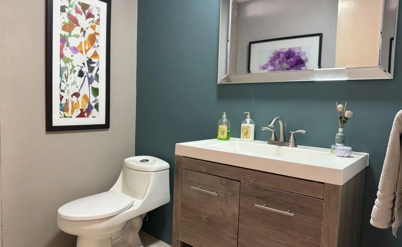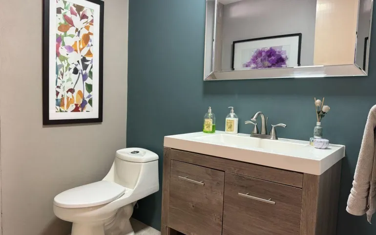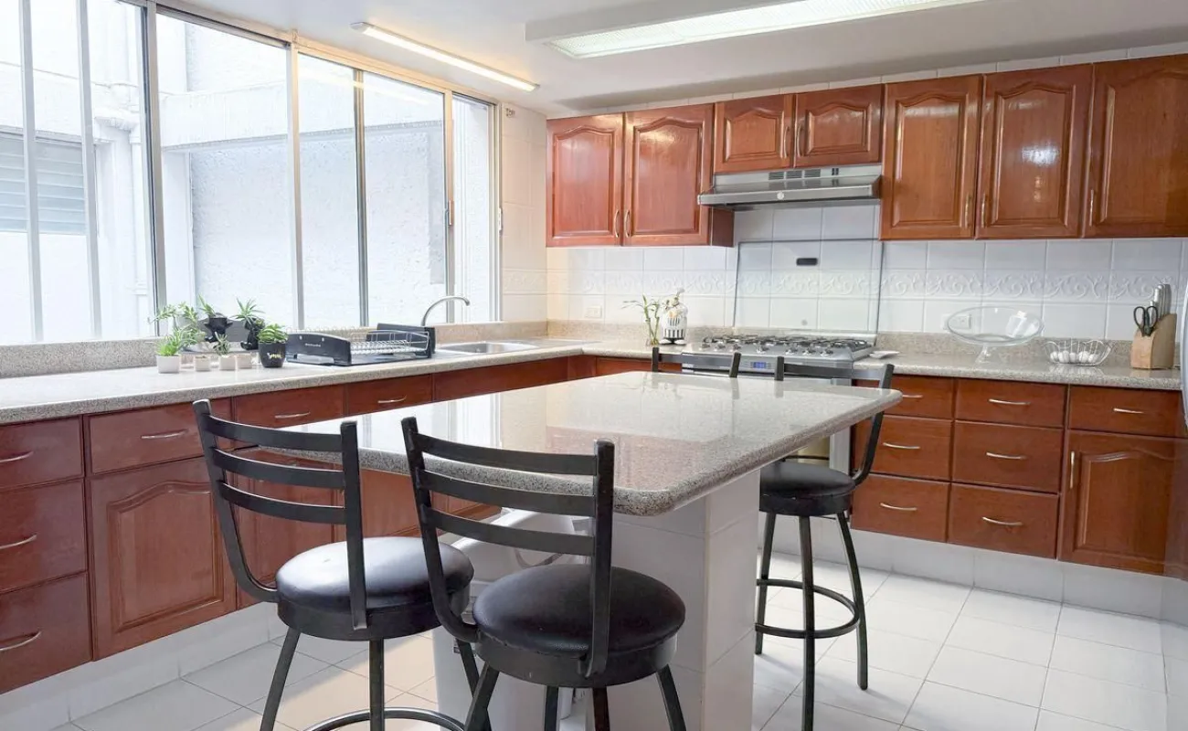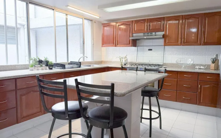 El departamento también incluye un área de lavado y un cuarto de servicio dentro del mismo espacio, proporcionando una mayor practicidad.