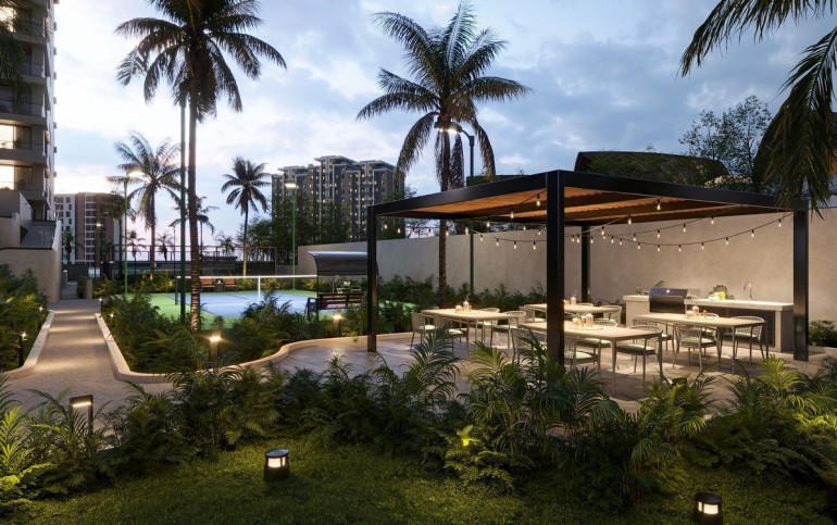 Incluye marina privada, alberca familiar, alberca infinity para adultos, jacuzzis, asadores, lounge bar, spa, gimnasio, business center, fire pit, pet park, kid’s club, área infantil, cancha de pádel, básquet 5, pickleball, volley beach y pool bar.