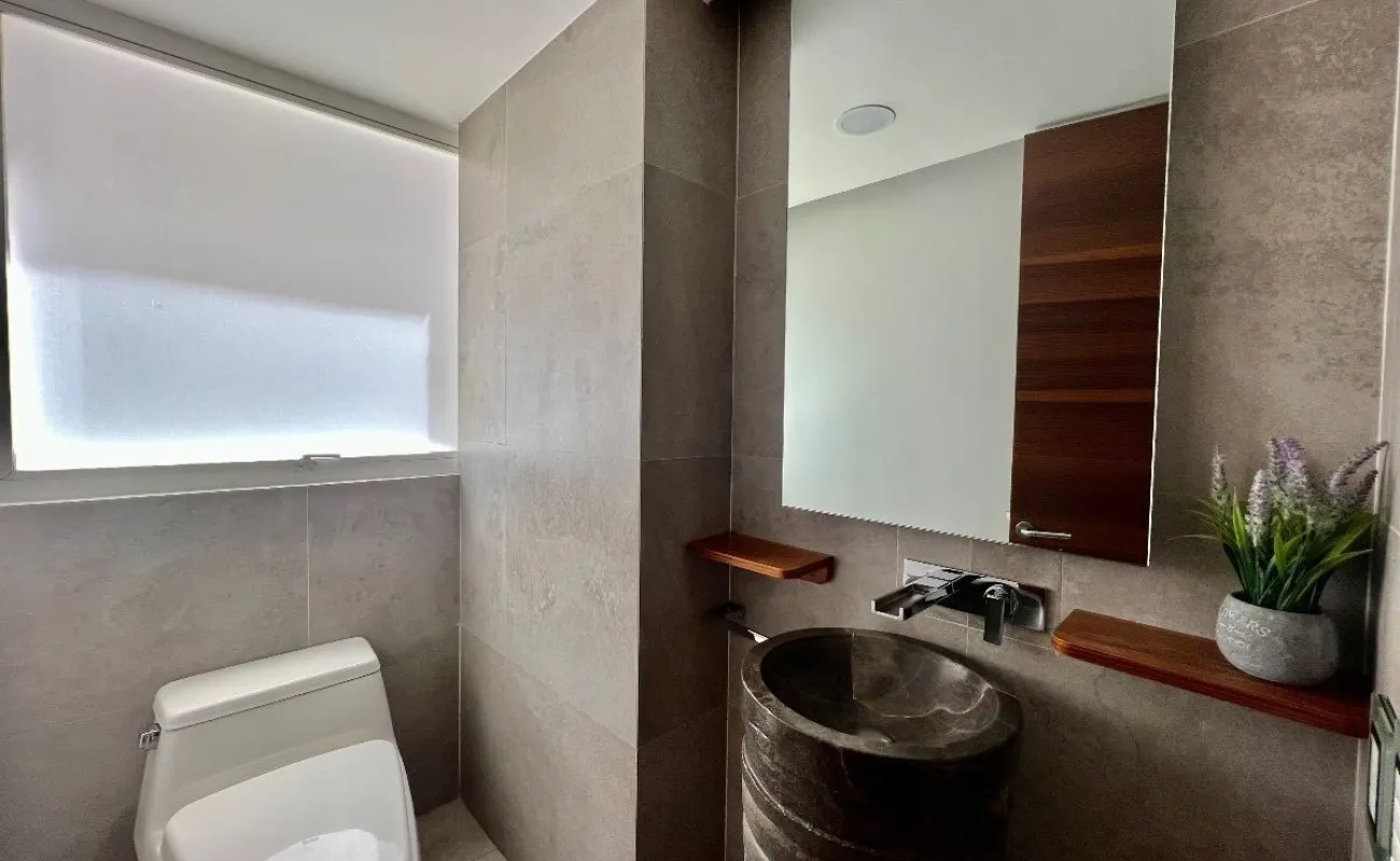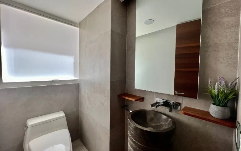 La recámara cuenta con un baño completo y un amplio walking closet, brindando privacidad y comodidad. Cuenta con baño de visitas para la comodidad de sus invitados.