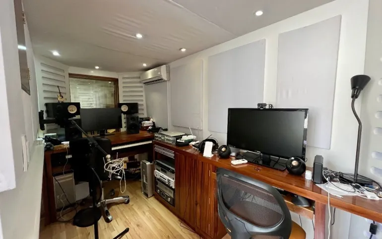 En el quinto piso, se ha adaptado un cuarto que puede ser utilizado como oficina, brindando así un espacio de trabajo privado y tranquilo.