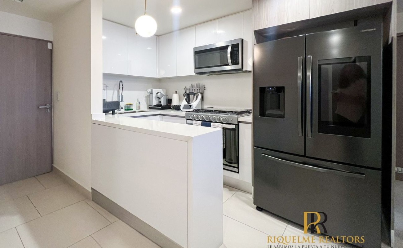 Estancia Abierta que integra la cocina y su barra con la sala, perfecta para el entretenimiento y la convivencia entre todas las áreas sociales.
