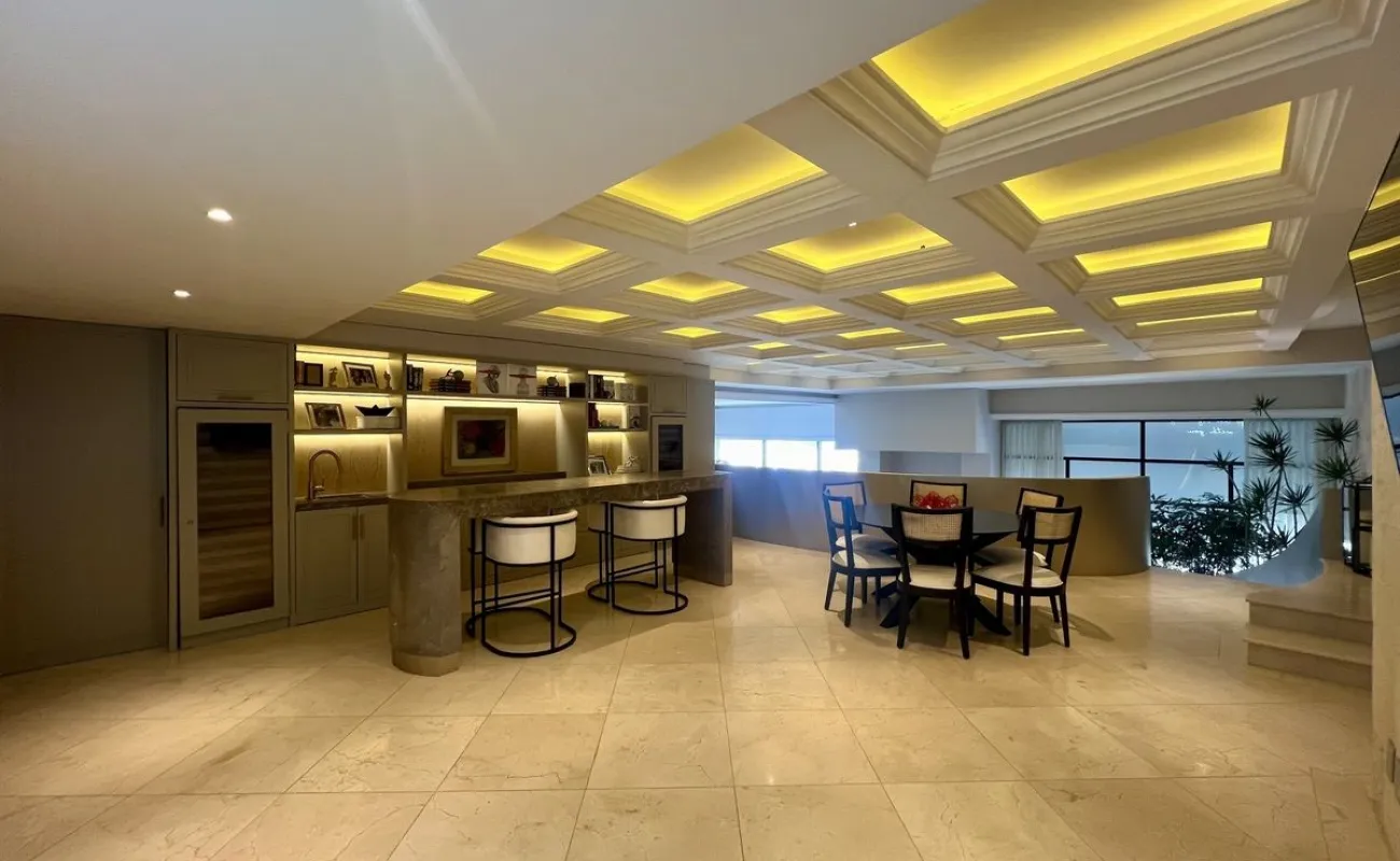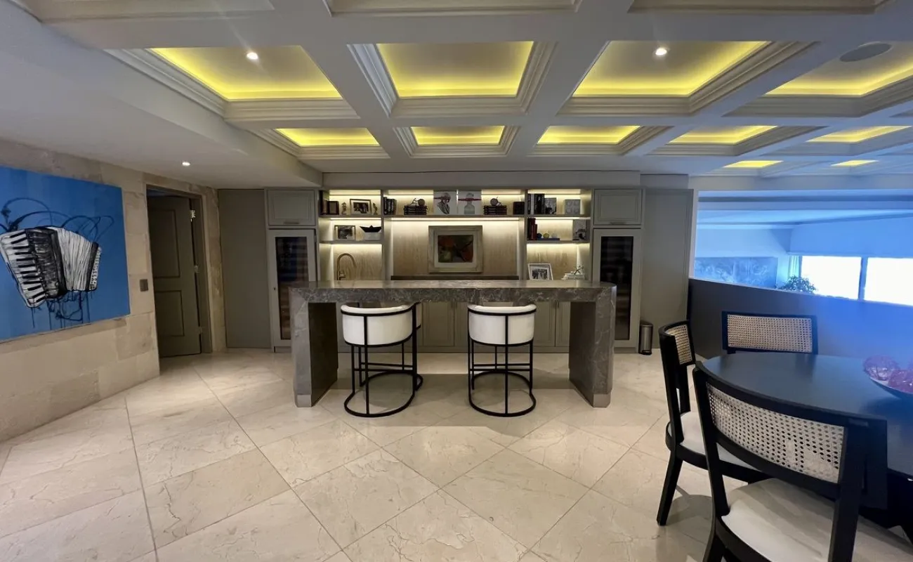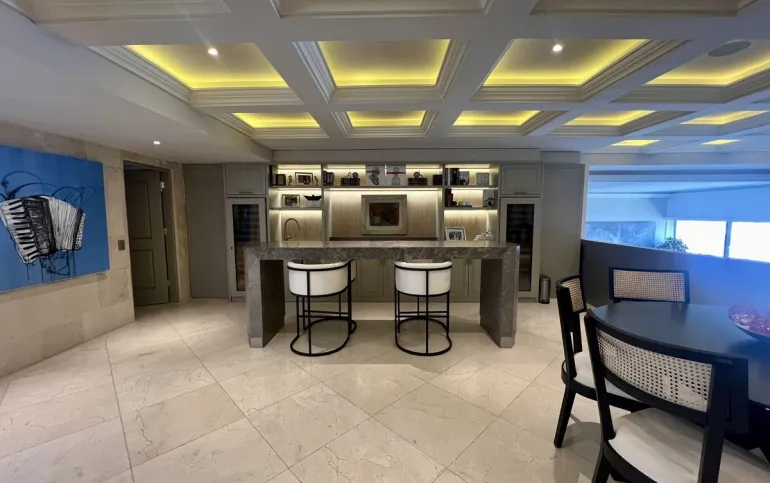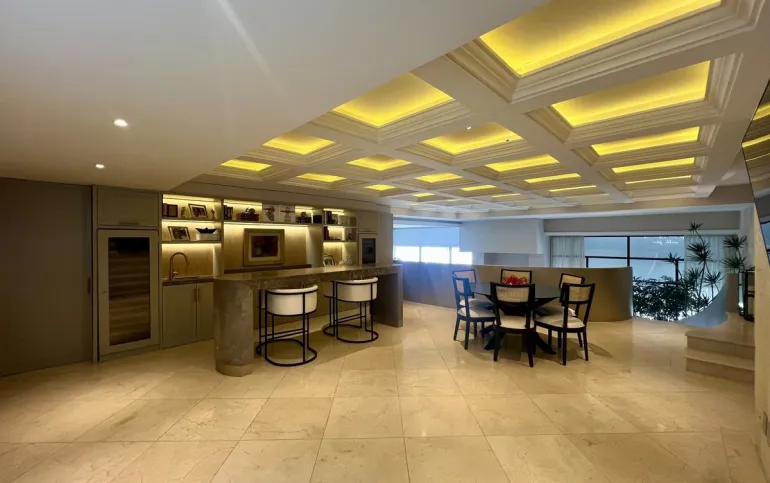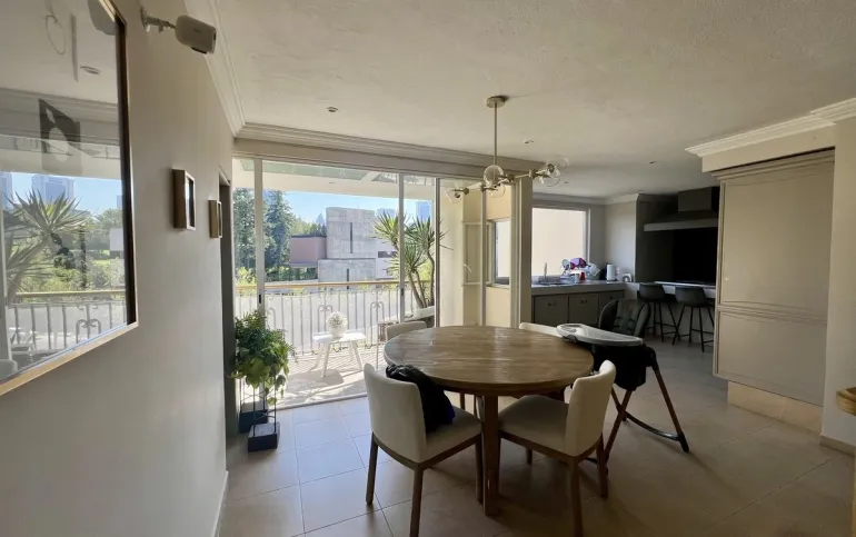 Este PH ubicado en el exclusivo Lomas Country Club, completamente remodelado con excelentes acabados. El inmueble cuenta con tres amplias recámaras, baños completos y walking closets. Consta de una sala y un comedor, espléndidos para reuniones familiares o sociales. Tiene un bar y un cine. Dos medios baños. La cocina es moderna y cuenta con antecomedor, despensa grande, área de lavado y un cuarto de servicio para tres personas. Además tiene un cuarto de pintura que podría transformarse en una cuarta recámara, gimnasio o ludoteca. cuenta con dos balcones que ofrecen vistas agradables. Tiene de dos bodegas pequeñas dentro del departamento para almacenamiento