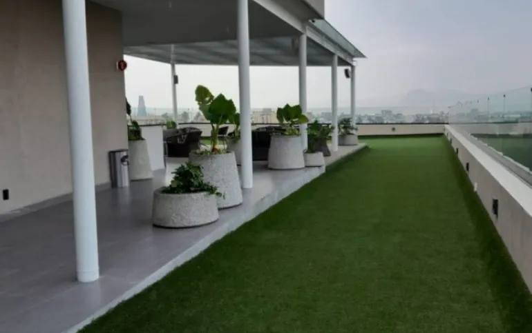 el condominio cuenta con servicios de: gimnasio, espacio de coworking, un área de lavandería común y un top-roof.
