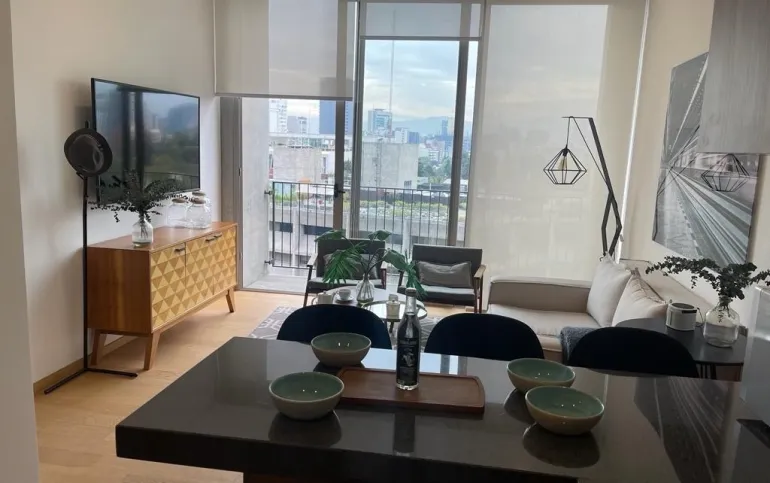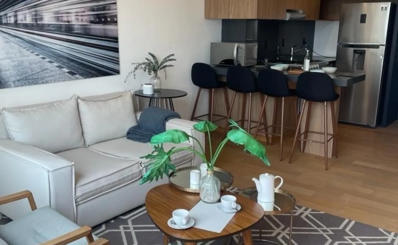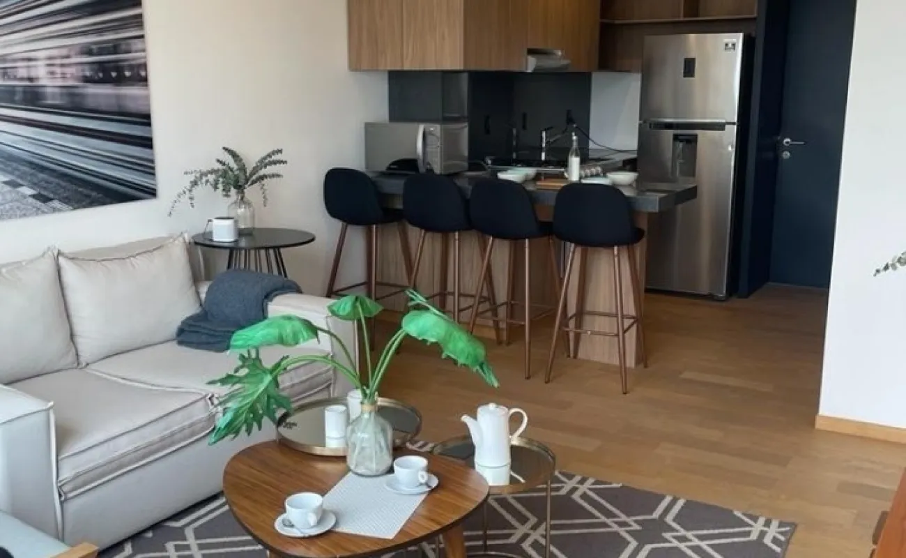 Departamentos de 60 m2 desde $ 4,443,000.00 constan de ( Estancia, techos altos, 1 recámara con baño, Clóset, Cocina abierta equipada, 2 balcones, 1 estacionamiento, área de lavado y bodega exterior de 3 mts) mantenimiento mensual de $3,000.00