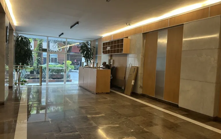 El departamento está en piso 5 con elevador, es interior con mucha luz natural. Cuenta con un lugar de estacionamiento que no se estorba con nadie.