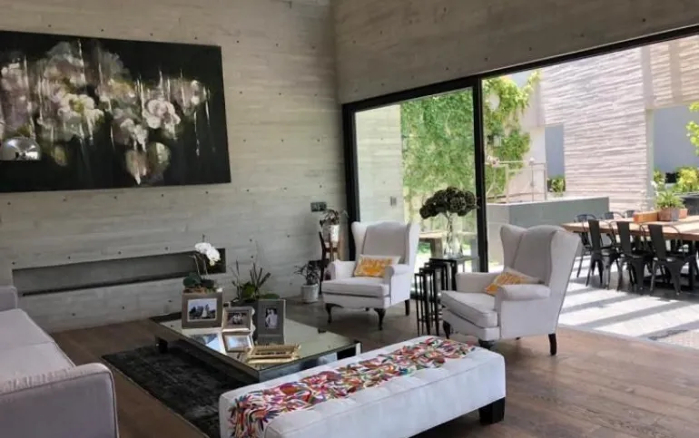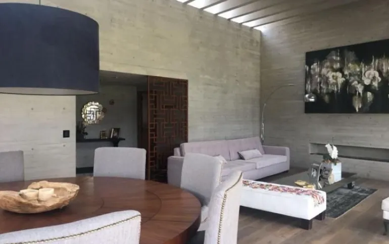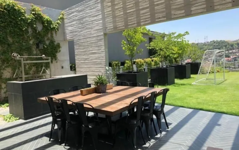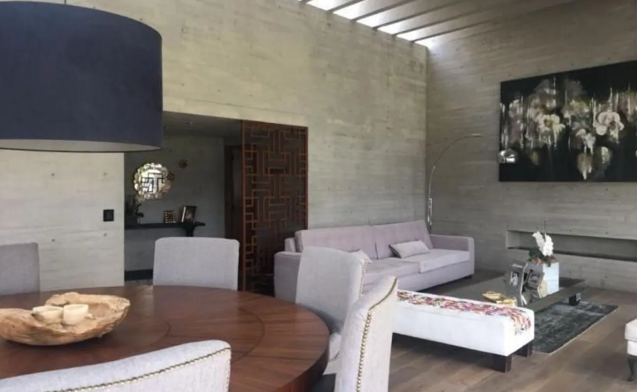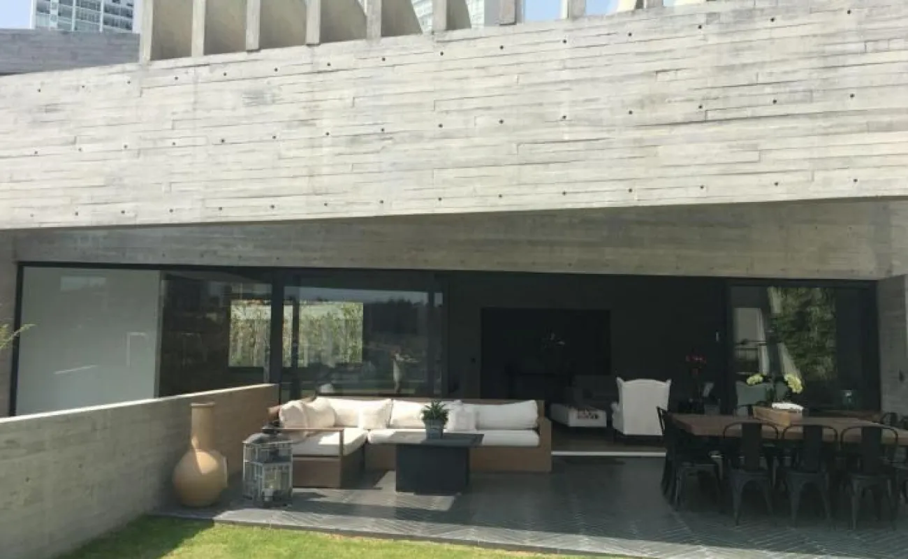 714 m2 terreno 550 m2 construcción 4 recámaras 4 Baños un medio baños sala, comedor, cocina antecomedor sala tv cuarto servicio Con baño completo jardín 400 M2 Terraza 200m2 2 estacionamientos techados y hay varios lugares afuera una bodega sala de estar y sala de meditación seguridad 24 hrs está en una cerrada privada Cuarto servicio caben dos personas, 4 baños completos incluyendo el de servicio y el de visitas. Está en cerrada privada con seguridad y nosotros pagamos el mantenimiento de la privada y el inquilino el de Bosque Real. Sala de estar y sala de meditación Todos los cuartos dan al jardín y al green y son dos jardines amplios y terraza con asador integrado jardín 400 m2 y 200 m2 terraza bodega también bastante grande Y dos lugares techados de estacionamiento pero caben afuera otros dos o tres coches somos la penúltima casa del fraccionamiento o sea muy privada y sin problema de estacionamiento Sala comedor cocina y además un home office divino. Los arquitectos han ganado muchos premios internacionales Precio venta : $45 mdp Precio de Renta: $200,000 pesos