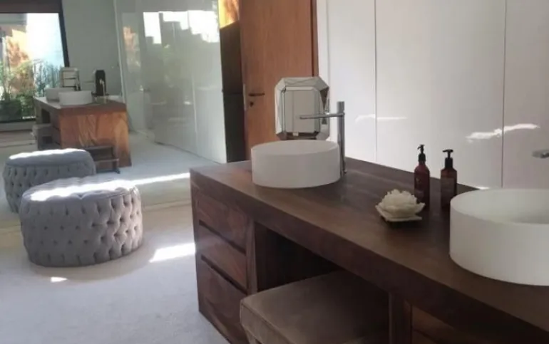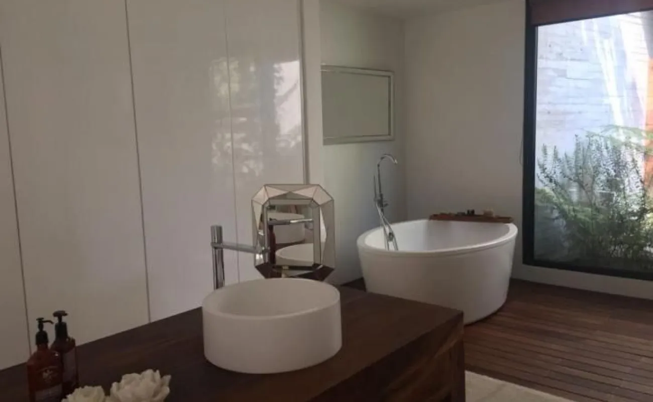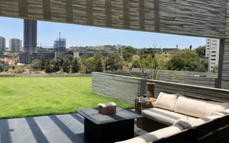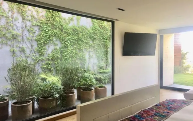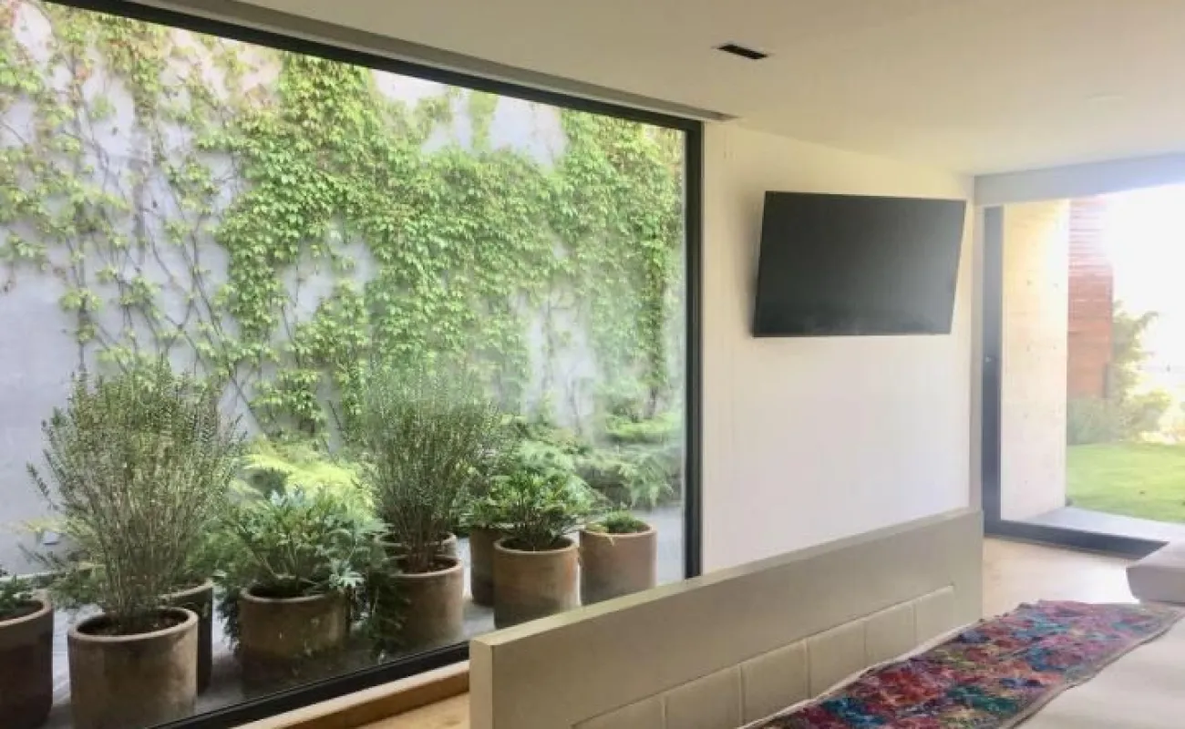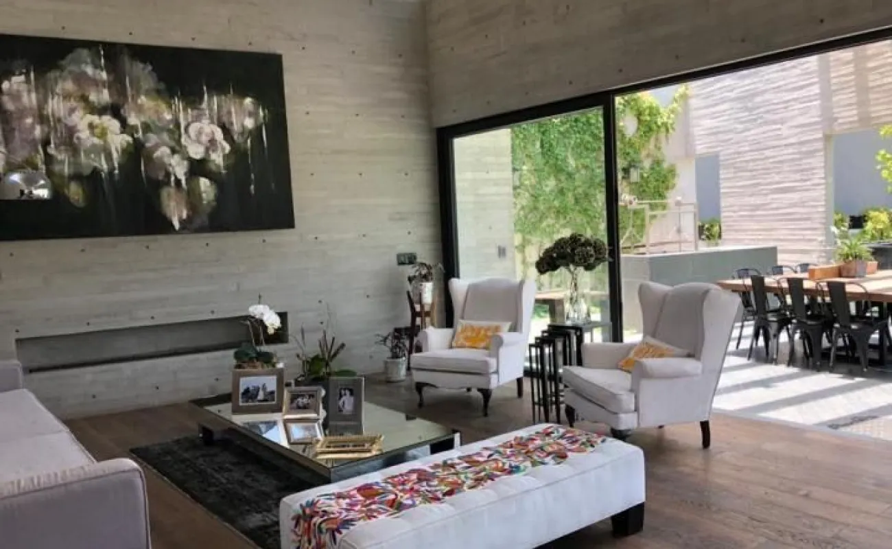 714 m2 terreno 550 m2 construcción 4 recámaras 4 Baños un medio baños sala, comedor, cocina antecomedor sala tv cuarto servicio Con baño completo jardín 400 M2 Terraza 200m2 2 estacionamientos techados y hay varios lugares afuera una bodega sala de estar y sala de meditación seguridad 24 hrs está en una cerrada privada Cuarto servicio caben dos personas, 4 baños completos incluyendo el de servicio y el de visitas. Está en cerrada privada con seguridad y nosotros pagamos el mantenimiento de la privada y el inquilino el de Bosque Real. Sala de estar y sala de meditación Todos los cuartos dan al jardín y al green y son dos jardines amplios y terraza con asador integrado jardín 400 m2 y 200 m2 terraza bodega también bastante grande Y dos lugares techados de estacionamiento pero caben afuera otros dos o tres coches somos la penúltima casa del fraccionamiento o sea muy privada y sin problema de estacionamiento Sala comedor cocina y además un home office divino. Los arquitectos han ganado muchos premios internacionales Precio venta : $45 mdp Precio de Renta: $200,000 pesos