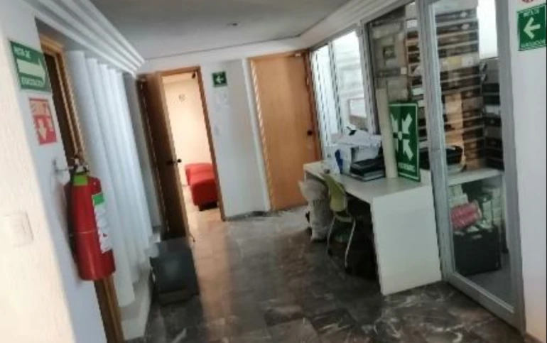 Dos niveles 600 metros cuadrados, escalera interior, área de recepción, divisiones en tablaroca, aluminio y cristal, existen varios cubiculos para oficinas privadas, dos salas de juntas, un elevador, cuatro baños, cocineta, instalación estructural, electrica existente, cableado de voz y datos, edificio seguro anti sismos.