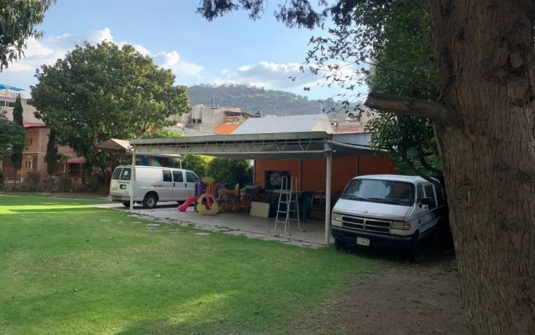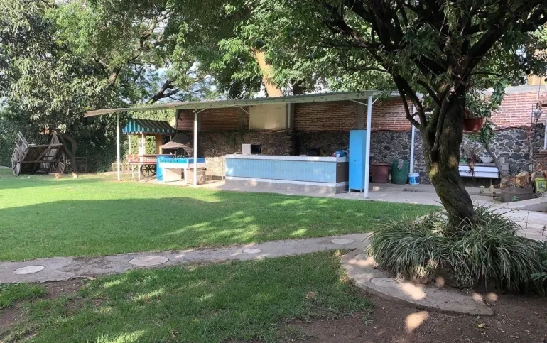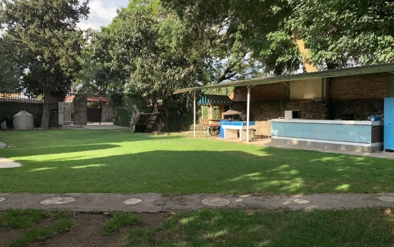 En el fondo cuenta con una construcción base que actualmente se usa como caballerizas.