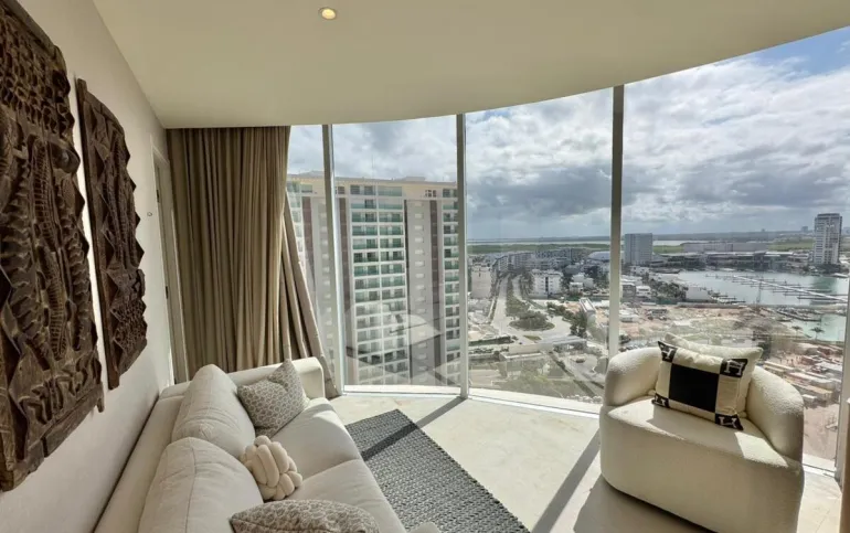 Ubicado en la zona más exclusiva y vibrante de Puerto Cancún, rodeado de playas, restaurantes, centros comerciales y a minutos del aeropuerto.